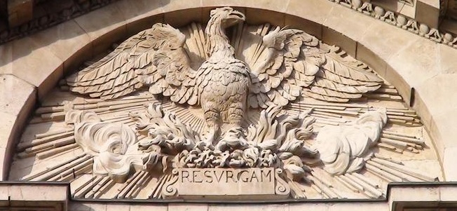 When St Paul’s was rebuilt by Sir Christopher Wren between 1675 – 1710, he included a sculpture on the south front of a phoenix rising from the ashes (of the Great Fire of London of 1666), with the Latin inscription Resurgam (I shall rise again) and after the Blitz in WW2, the phoenix still rises!