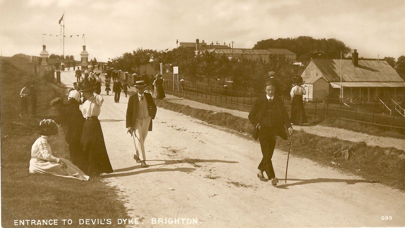 The London to Brighton railway opened in 1840 and Brighton became very popular for day trippers and for holidaying Londoners. Due to this, people started to explore the surrounding area (the South Downs). A three-mile branch of railway track was laid to Devil’s Dyke summit in 1887 (which run until 1938). This ferried sightseers in ever greater numbers to enjoy the magnificence of this unique geological feature and a thriving tourism industry had begun.
